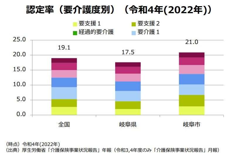 画像・グラフの引用元:岐阜県・岐阜市・全国における要介護認定率|岐阜市役所公式ホームページ[PDF]
