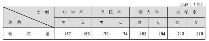 画像・表の引用元:2021年の産業・学歴・性別初任給額 |岐阜県庁